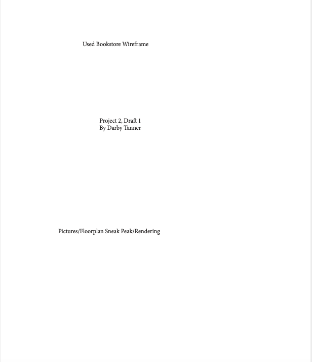 The second project tasked students with extensive usability and accessibility design peer reviews. IN order to engage in these peer review sessions, students were allowed to choose any used space to redesign. I chose to develop my own design for a used bookstore based on my anecdotal experiences working in and shopping at bookstores. The project is split up into three peer reviewed drafts and one final draft.
