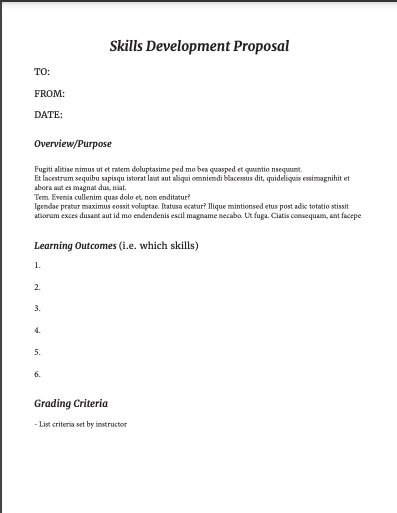 As you can see, my second draft includes a much more detailed mock-up of what I wanted the Skills Development Proposal and the Publishing Plan to look like. I also filled in much of the content and explanation. However, my timeline was not accurate to the weeks I would be working on Project 3 and I still had fears that my project was too cramped.