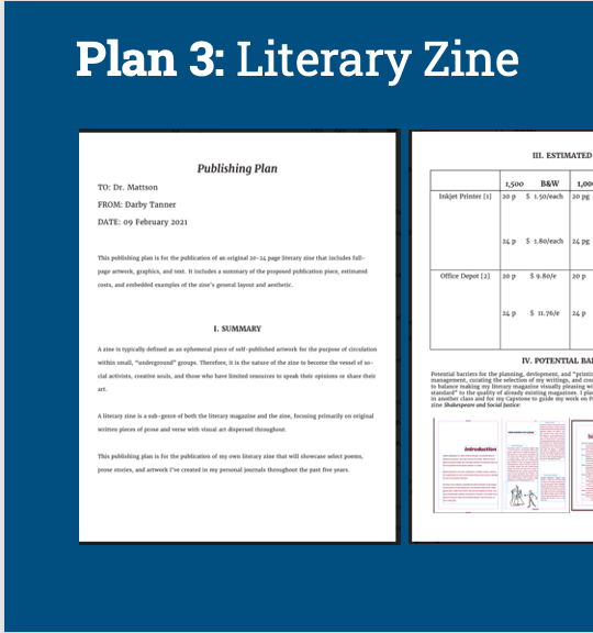 In fulfillment of WRTG 4309 Introduction to Publishing, here is a timeline of the drafts I created while developing both Project 1: Skills Development Proposal & Publishing Plan, Project 2: Publishing Plan Review Slideshow, and Project 3: Published Deliverable. These projects were assigned to test my knowledge of the publishing process and skills associated with design software including Adobe InDesign.